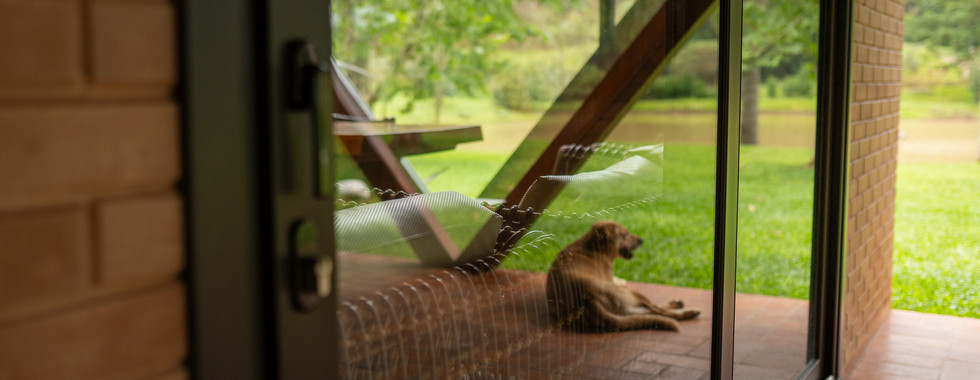 Todas as janelas contam com tela mosquiteira embutida, garantindo um ambiente arejado e livre de insetos. Essa combinação resulta em uma casa acolhedora e funcional, que harmoniza a estética rústica com as vantagens modernas do PVC.